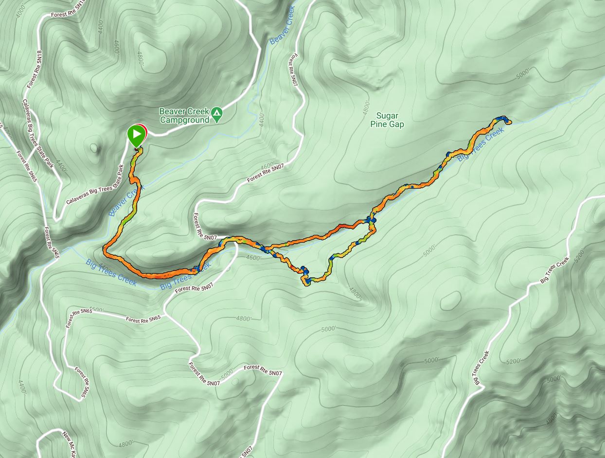 I kept pushing fast forward. My friend was getting fatigued, but we were not a a good camping place yet. We needed to get to the Lower Relief Meadow where the trail would meet the creek again. It was no time for even slowing down because the sun was setting.