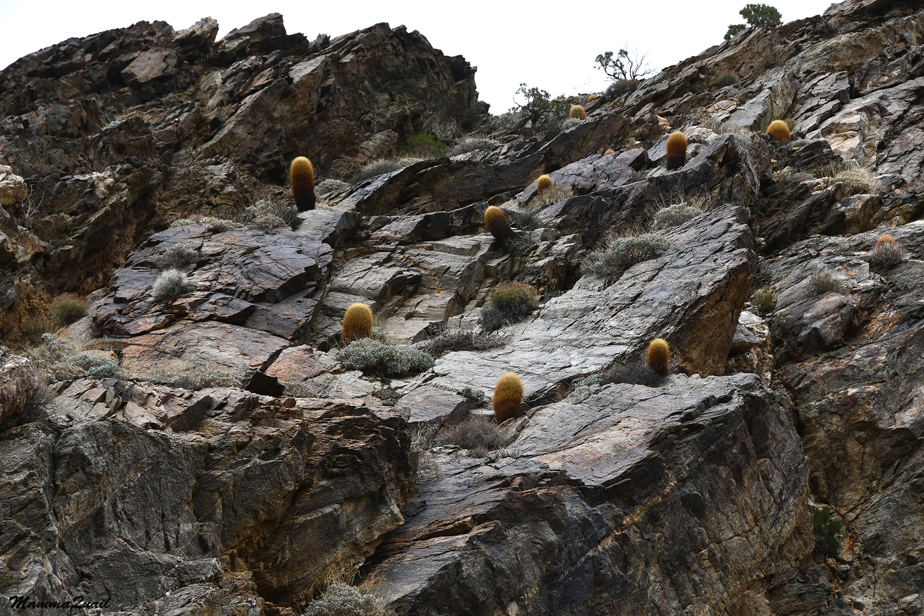 Very different plant community was growing on the canyon walls, only a short distance away from the water. Naturally, there were fewer plants. Of these plants the dominant was the California barrel cactus.