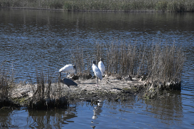 We could see no more birds on the marsh side of the road so we all crossed back to the southwestern side to take another look and the wood storks.